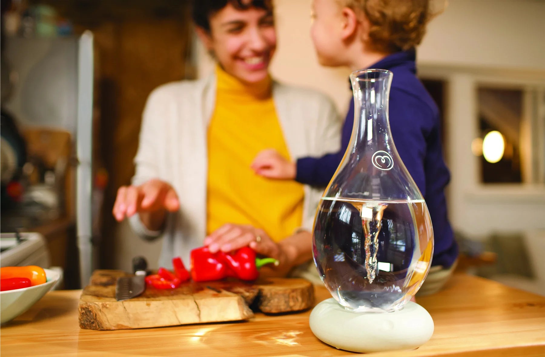 Hur det fungerar: Swirls porslinsbas genererar en mild bubbelpool som luftar och återbalanserar ditt vatten och efterliknar flödet i en bergskälla. virvelrörelser syresätter och alkaliserar upp till 6 000 gånger snabbare än stilla vatten, vilket hjälper till att återställa vitalitet och smak. Resultatet är mjukt, silkeslent, pH-balanserat vatten som främjar bättre hydrering och absorption på cellnivå.
